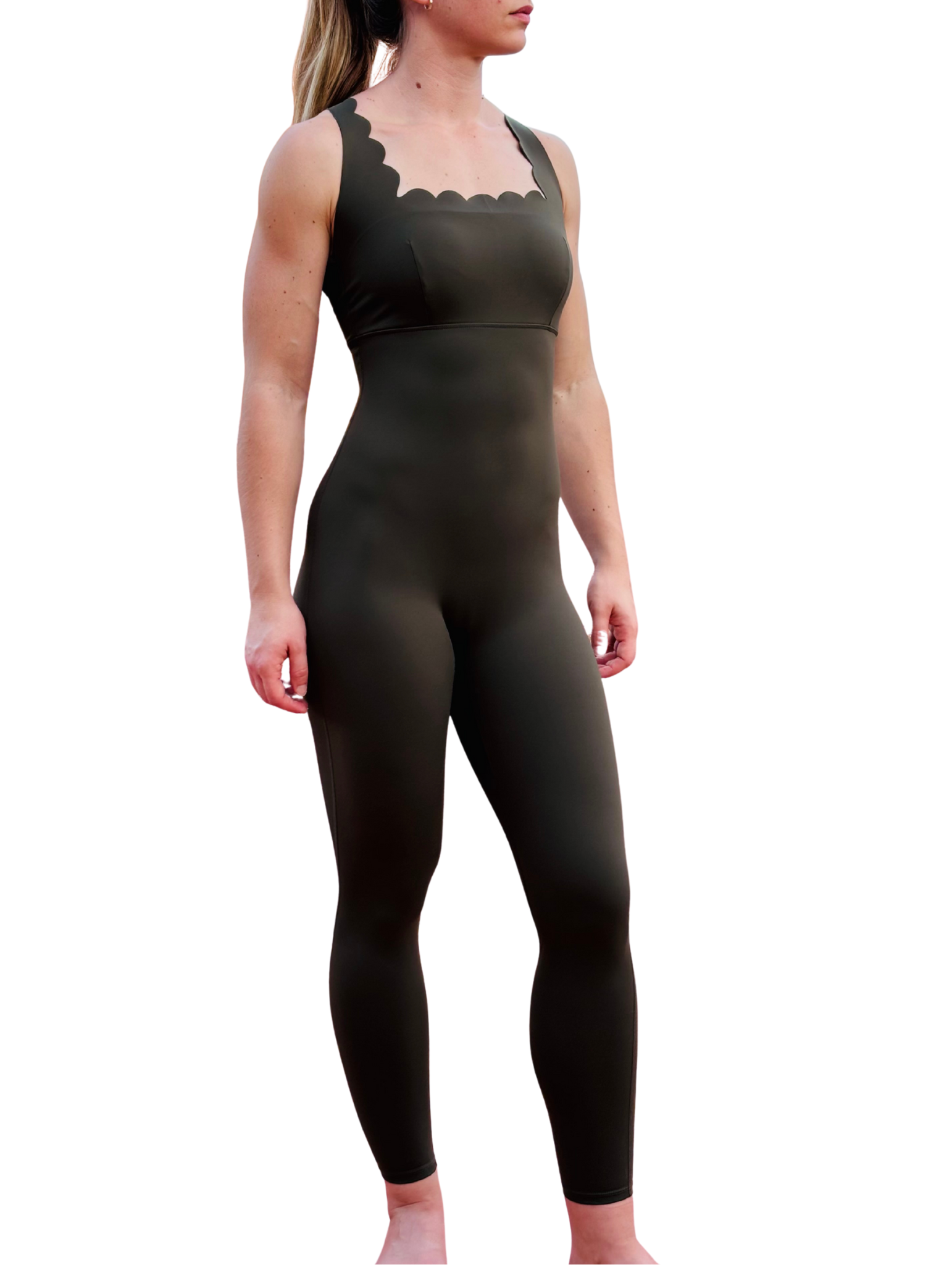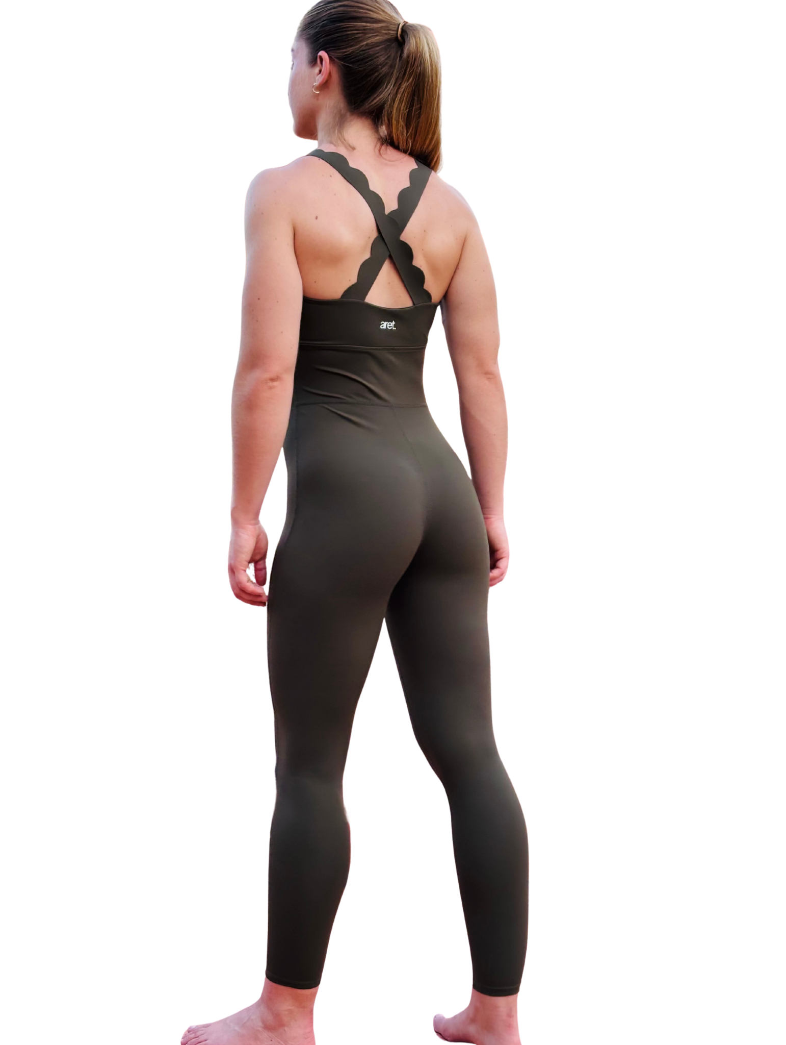 Luce con estilo y comodidad con el mono Emerald en un elegante color verde oliva con tirantes cruzados y diseño ondeado. Pensando en quienes desean versatilidad, ajuste ceñido y un toque femenino con detalles únicos. Perfecto tanto para entrenamientos ligeros, sesiones de yoga, como para combinar con accesorios y calzado casual para un look urbano chic. Con sujetador integrado para incluir copas. Tejido suave y transpirable de alta resistencia.